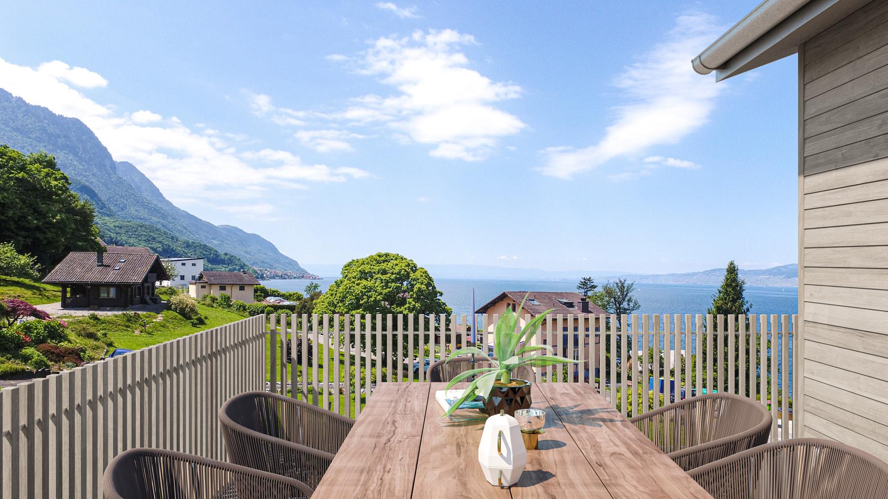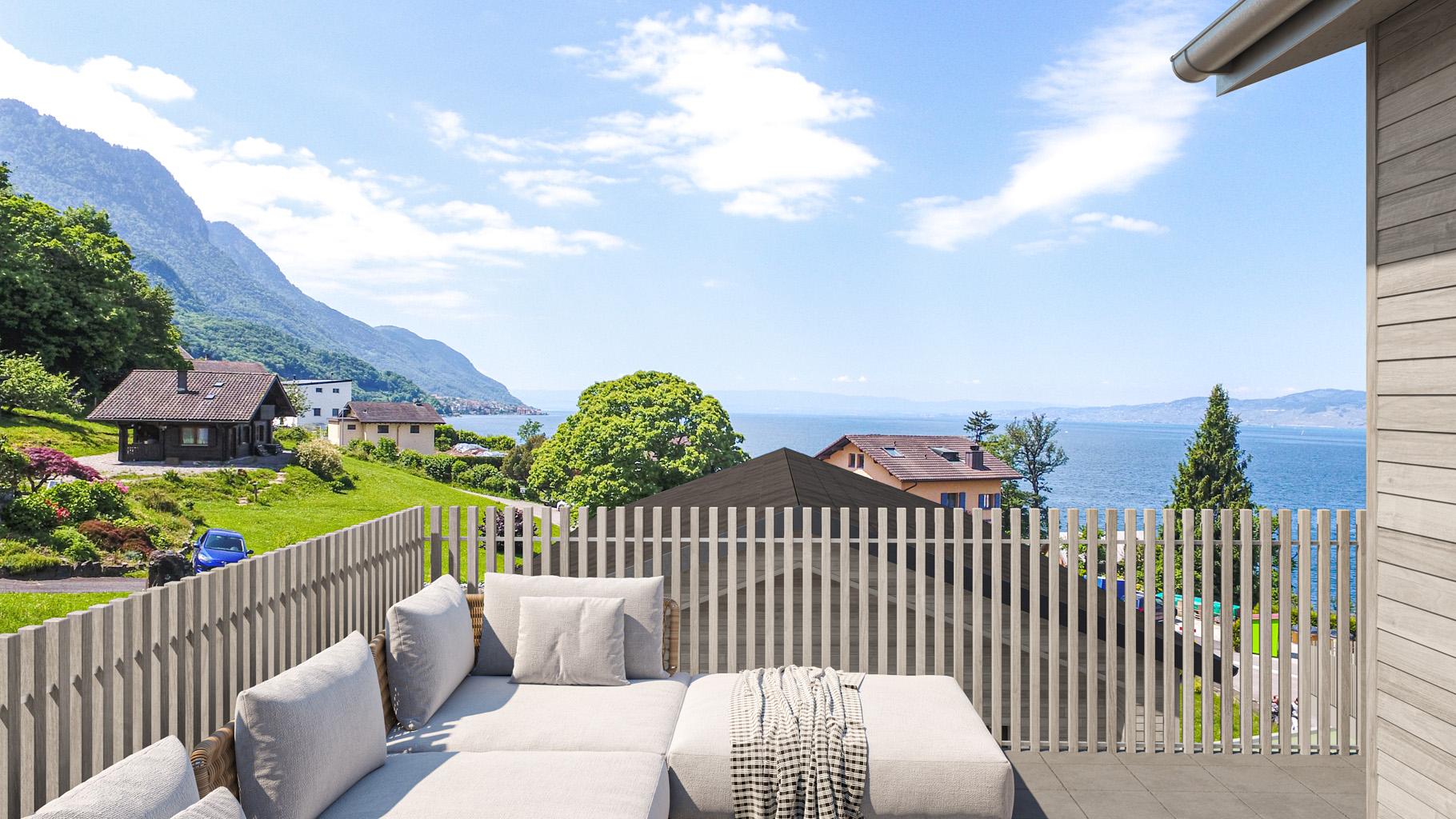 Vous jouirez d’une magnifique vue sur le lac et d’une luminosité optimale que vous pourrez admirer depuis votre terrasse. Les espaces intérieurs sont spacieux et lumineux. Chaque maison comporte trois chambres à coucher dont une avec salle de bains en suite. Le lac étant à côté, vous pourrez rejoindre le port du Bouveret en 12 minutes à pieds par le Chemin du Vieux Port qui était le quai emprunté par les anciens douaniers.